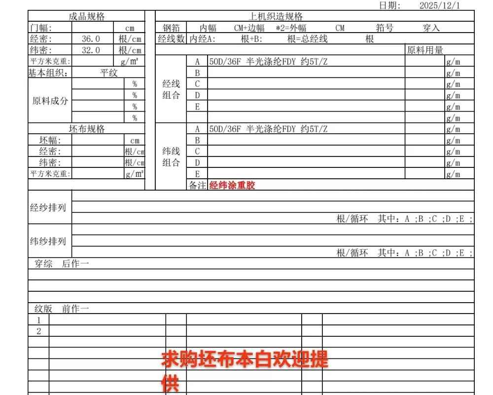 | 织造方式 | 门 幅 | ||